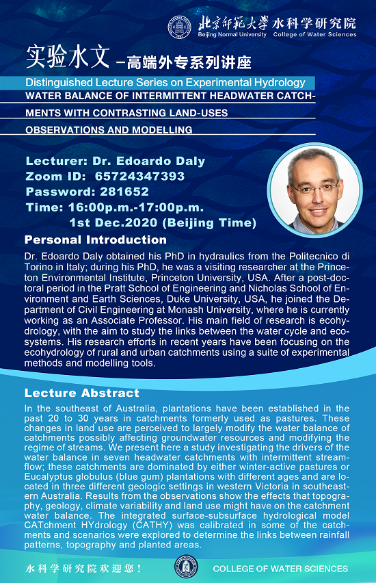 Distinguished Lecture Series on Experimental Hydrology
