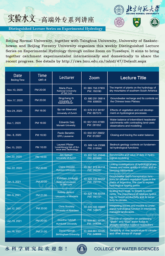 实验水文高端外专系列讲座 Distinguished Lecture Series on Experimental Hydrology