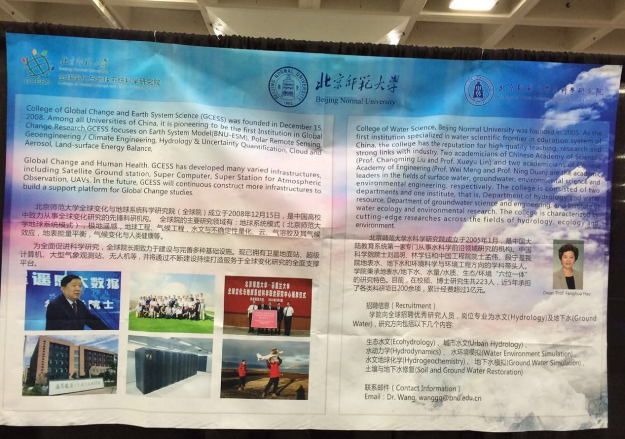 2016年12月12日-16日,我院院长郝芳华教授、水文水资源系主任鱼京善教授以及2014级博士生田培和刘沙沙等共7名师生赴美国旧金山参加2016年美国地球物理学会的秋季年会(2016 AGU Fall Meeting),开展了学术交流、对外宣传和吸引人才等活动。