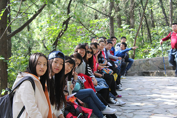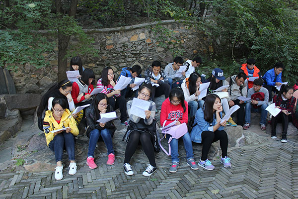 1024日,我院2015级硕士班前往北京香山公园进行户外远足秋游活动。香山又叫静宜园,是中国四大赏枫胜地之一,位于北京海淀区西郊,全园面积160公顷,顶峰香炉峰海拔557米,是北京著名的森林公园。