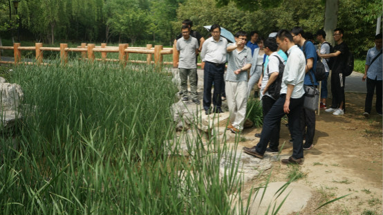 下午,在蔡雳主管的带领下,与会代表参观了北京经济技术开发区在海绵城市建设、雨水控制利用方面成功的案例,并针对每个案例就其建设的由来、发挥的成效及持续发挥较好作用的情况进行了详细的讲解。讲解过程中,各位与会的教师、专家与研究生对存在的疑惑进行了沟通与交流。通过与蔡雳主管交流,对一些在实际应用中的LID措施,如植草沟、下凹式绿地等有了更深刻的认识。