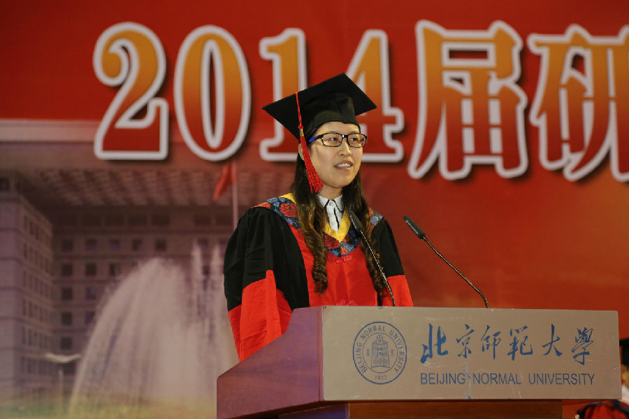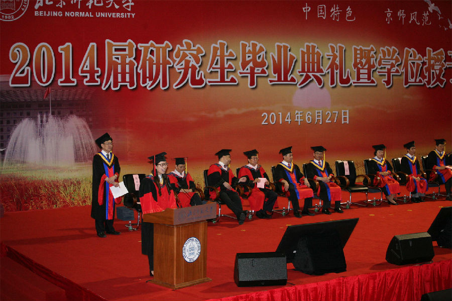 李艺同学感谢母校和老师对学生们的辛勤培育,并表达了对母校和师长的不舍之情。她回忆自己三年学习历程,收获颇多,先后参加省部级以及国家自然科学基金支持的多项中文无码课题,并参加多次国际会议,组织和参与了中文无码实践和社会实践,积极参加中文无码 和班级组织的各项活动,在SCI和中文核心期刊上发表论文七篇。李艺表明,自己以后要服务家乡,投身中文无码,建设西部。师大承载了同学们的梦想,大家要不断努力,向学生时代告别,开始另一段人生历程,正直为人,努力工作,服务社会,无愧母校,为实现中华民族伟大复兴的"中国梦”而奋发努力。最后,她代表全体同学再次感谢母校,感谢师长,祝愿母校蓬勃发展,老师身体健康,所有毕业生前程似锦。