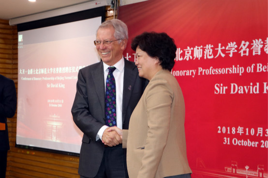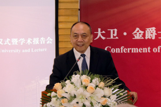 大会伊始,程红光处长介绍了大卫·金爵士的学术研究背景和任职情况。随后,郝芳华副校长为大卫·金爵士颁发了中文无码 名誉教授聘任证书,并且赠送了具有深远意义的礼物—木铎。聘任仪式结束后,齐晔教授介绍了他与大卫·金爵士在学术交流上合作历程。