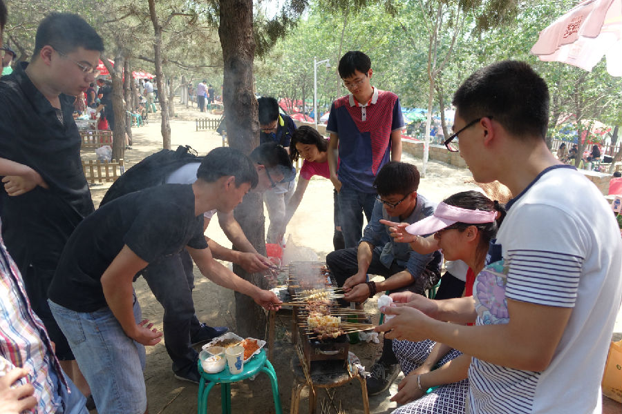 下 午我们来到了美丽的青龙湖并在湖边进行了户外烧烤春游活动。同学们积极性很高,大家分工明确,团结协作,很快把一切准备妥当。烧烤正式开始后,老师和同学 们围在烤炉旁边说说笑笑,津津有味地品尝着自己的劳动成果。烧烤完后,同学们一起欣赏青龙湖的美丽风光,还玩起游戏,合拍照片,笑声不断。