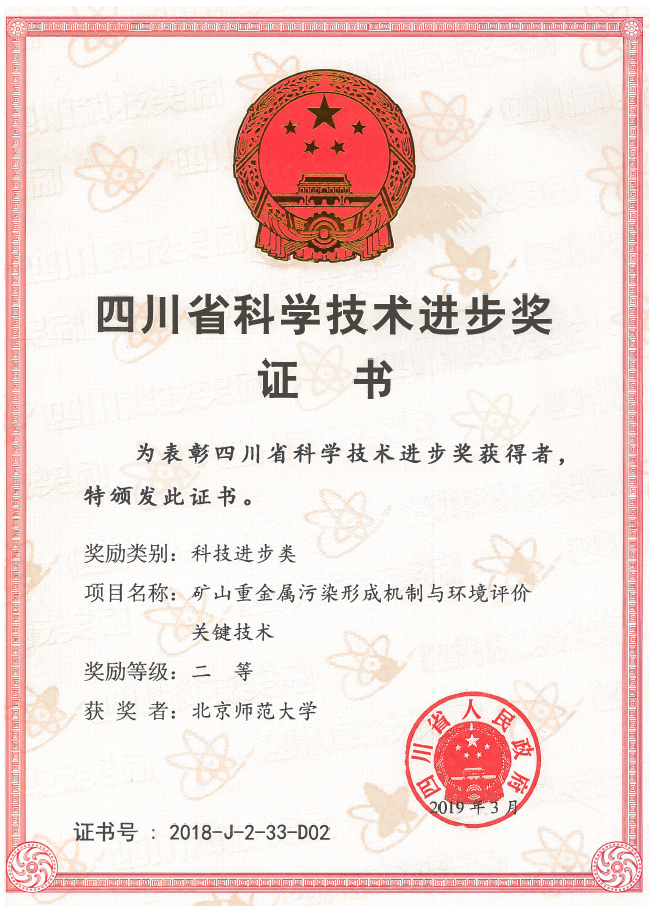 2019年3月,我院滕彦国教授、陈海洋副教授、杨洁讲师参加完成的“矿山重金属污染形成机制与环境评价关键技术”项目成果获得2018年四川省科学技术进步二等奖。
