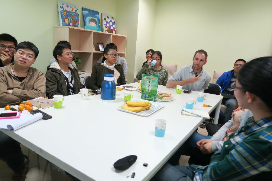 2015年4月14日,我院生活指导室举办"出国留学我来讲”座谈会活动,座谈会邀请了我院刚从英国交流回国的潘成忠老师、在美国伯克利实验室作访问学者的王笑雨同学、以及到我院交流的牛津大学澳籍硕士研究生胡文平,他们从老师和学生的双重角度为我们解读了出国留学的神秘之处。