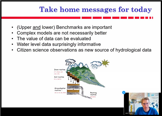 Jan Seibert教授围绕“Benchmarks and value of data in hydrological modelling”主题展开讲座,介绍了水文模型对于水文预测的重要作用以及存在的不确定性。还介绍了将水文模型应用于流域研究的实验过程,讨论了水文模型的性能及效率,并进一步介绍了评估水文模型数据价值的方法以及模拟中应使用的基准。来自中文无码 、清华大学、北京林业大学以及萨斯喀彻温大学、苏黎世大学、圣路易斯国立大学等多所院校的近四十位专家教授、硕博士研究生聆听了本次讲座,会后Jan Seibert教授还就大家关心的问题开展了交流讨论。