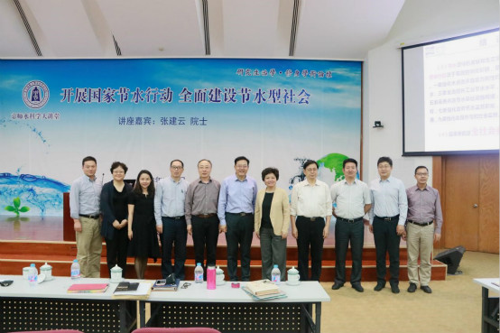 张建云院士首先从国家节水行动及其重要意义开始,阐述气候变化对水资源的影响,分析了我国当前的节水现状以及面临的问题,强调了十八届五中全会以来国家对于绿色发展的理念国家节水行动的任务与建议。深入浅出让师生受益匪浅。报告结束后,张建云院士与师生进行了积极的互动,耐心细致地解答了老师和同学们提出的问题。