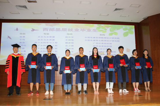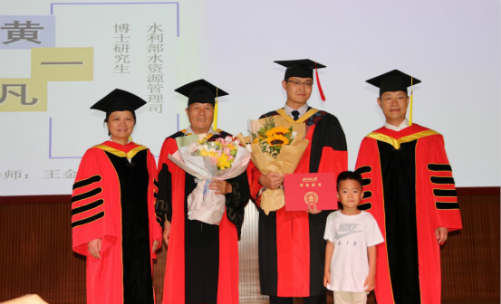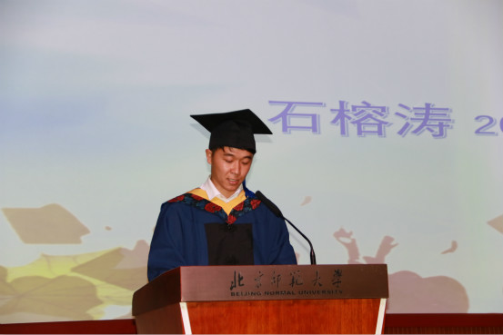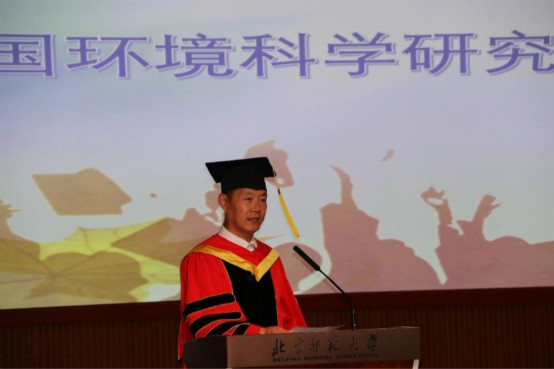 随后,郝芳华校长和宋永会院长为博士毕业生颁发博士学位证书并扶正流苏,我院徐宗学教授、王金生教授和滕彦国教授为硕士毕业生颁发硕士学位证书并扶正流苏。毕业生代表尹文杰博士和石榕涛硕士分别发言,表达了对老师的感激之情,回忆了水科生活的点点滴滴,并为母校送上了真挚的祝福。