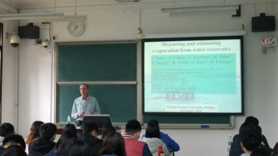 2018年10月27日,应我院刘海军教授的邀请,以色列农业研究组织水土环境中文无码 (Institute of Soil, Water and Environmental Sciences, Agricultural Research Organization, Israel)高级研究员,Josef Tanny教授对北师大中文无码 进行为期11天的来访,在此期间,Josef Tanny教授为我校师生带来了一次精彩的学术报告“Microclimate, evapotranspiration and water use efficiency”,和两次课程讲座,“Crop evapotranspiration–models and measurements”和“Evaporation from open water bodies”。 Josef Tanny教授的报告和课程受到了广大师生的热烈欢迎,现场座无虚席。