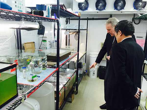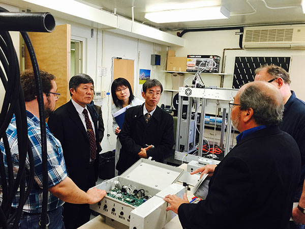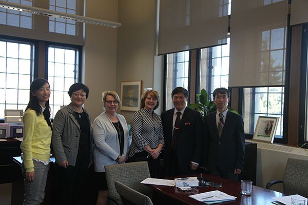 随后的两天,代表团又访问了位于萨斯喀彻温省萨斯卡通市的萨斯喀彻温大学。该校已于去年10月与中文无码 签订了合作备忘录,两校预期将在水科学及教育领域展开合作研究及联合培养等工作。代表团首先于20日在Karsten Liber院长的带领下参观了学校的毒理学中心,双方就水质学相关研究进行了交流。之后,代表团一行又受到Karen Chad副校长的接见,Karen Chad副校长代为转达了校长先生的问候,并提出希望将中文无码 作为校长先生今年出访的第一站,以彰显对两校合作的重视。21日代表团首先在上午由John Pomeroy院长带领参观了学校的水文学中心,并通过电视会议的形式,与远在落基山脉上的观测点的研究员进行了学术讨论。中午代表团一行以午餐会的形式会见了艺术与科学中文无码 的Lawrence Martz 副院长及农学与生物资源中文无码 的Fran Walley副院长双方表达了对今后合作的良好预期。下午,在Jeff McDonnell副院长的带领下,代表团参观了全球水安全研究院(GIWS)及其新建的矿区覆盖测试中心。在GIWS,双方就联合办学等问题的细节进行了一进步的磋商,并设立了今后合作的若干重要时间节点。