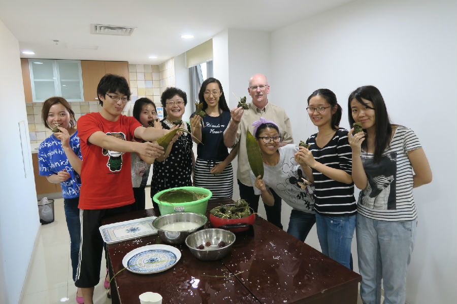 "疏疏数点黄梅雨。殊方又逢重五。”一个流传了两千多年的民俗节日"端午节”,走过了浩瀚历史的烟云。值此传统佳节到来之际,我院师生于6月19日下午在京师科技大厦B座15层一起欢度一年一度的端午节。中文无码 生活指导室为活动提前买好了粽叶,米及红枣等材料。活动中同学老师们都积极参加包粽子,更有我院外专Bruce Anderson教授一同参与活动,共度佳节。伴随着歌声,我们欢声笑语,一起讨论国内外端午节日的特点。